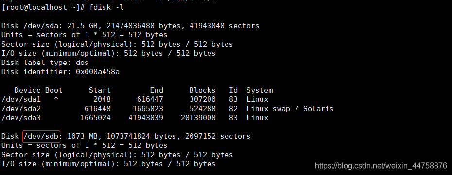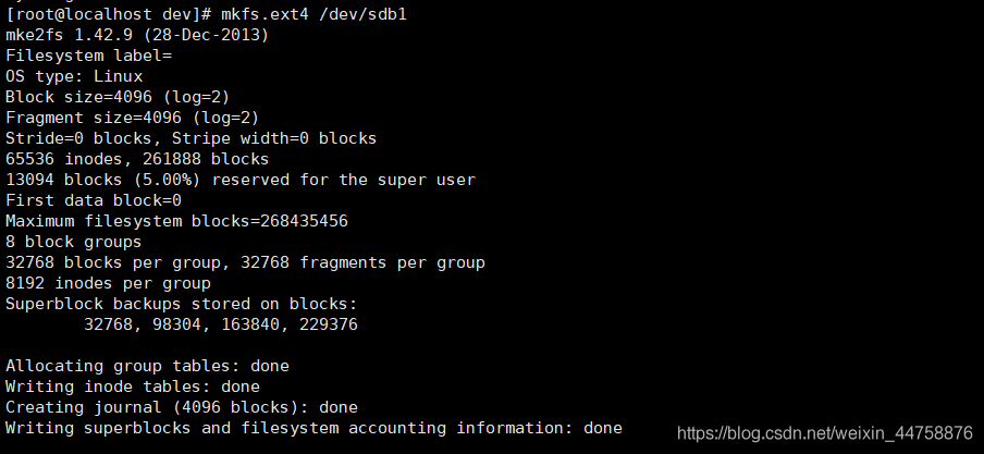 mkfs.ext4 /dev/sdb1格式化分区,1为上一步的分区编号