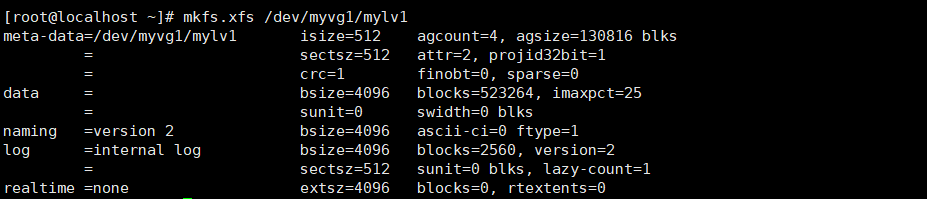 mkfs.xfs /dev/myvg1/mylv1格式化逻辑分区