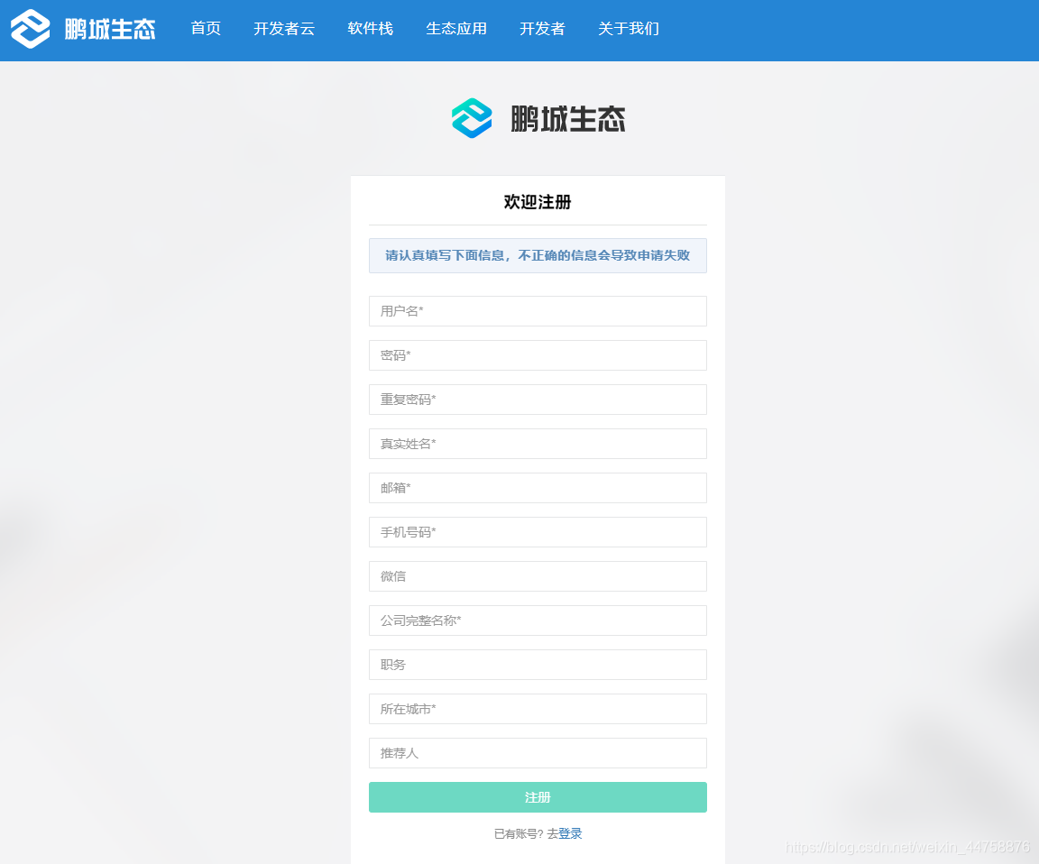 - 注册成功之后输入用户名和密码登录,然后点击“开发者云”