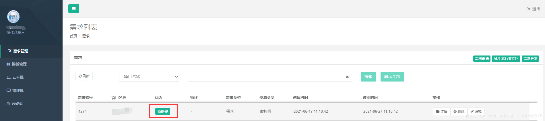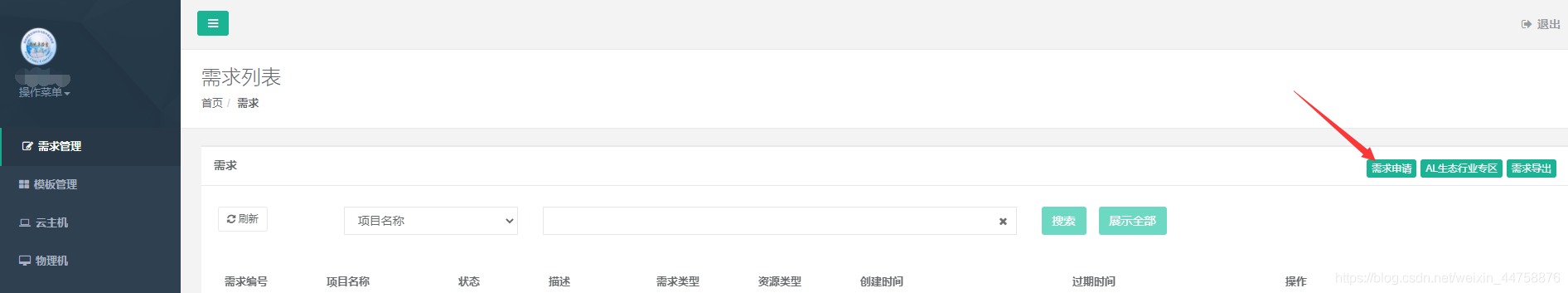 - 验证成功之后,登录账号,再点击“开发者云”,会出现下面的页面,然后点击“需求申请”