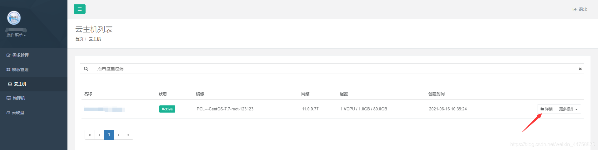 - 我这里申请的1核1G不到两个小时就通过了,申请通过之后会发邮件通知,然后我们再点击左边菜单的“云主机”,就可以看到已经通过的主机了,再点击右边的“详情”,就可以看到对应的ip和连接端口