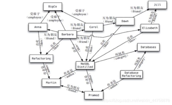 - 键值对存储、列存储、文档存储、图形数据库(社交关系)
