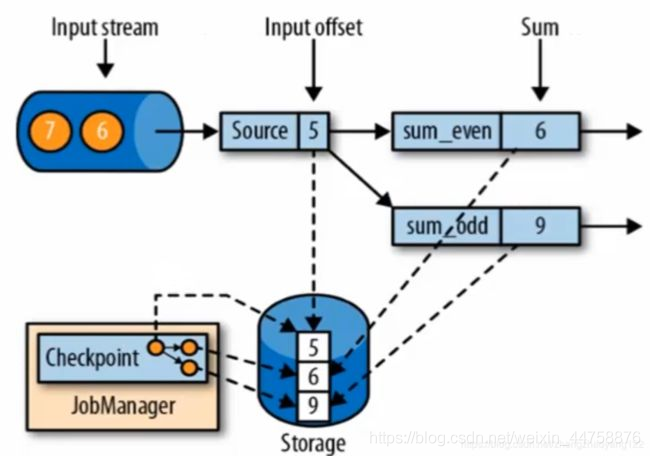Flink 具体如何保证 exactly-once 呢? 它使用一种被称为"检查点"(checkpoint)的特性,在出现故障时将系统重置回正确状态。下面通过简单的类比来解释检查点 的作用。
