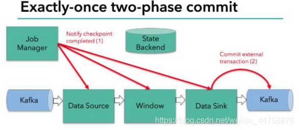所以我们也可以看到,如果宕机需要通过 StateBackend 进行恢复,只能恢复所有确认提交的操作。