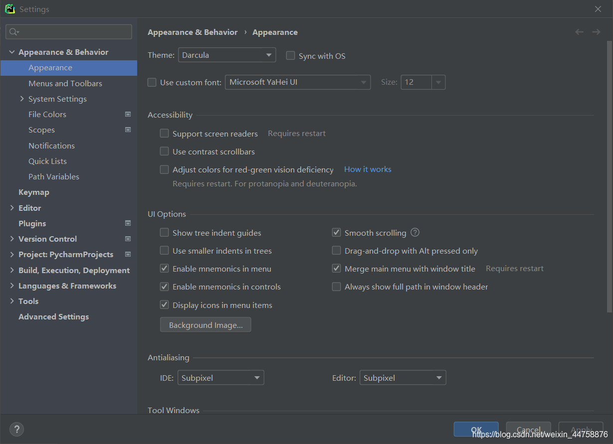 PyCharm 修改背景颜色