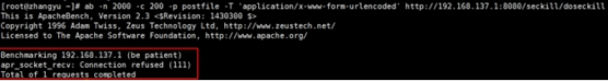 - 执行ab -n 2000 -c 200 -k -p ~/postfile -T application/x-www-form-urlencoded