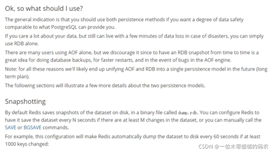 • 只做缓存:如果你只希望你的数据在服务器运行的时候存在,你也可以不使用任何持久化方式.