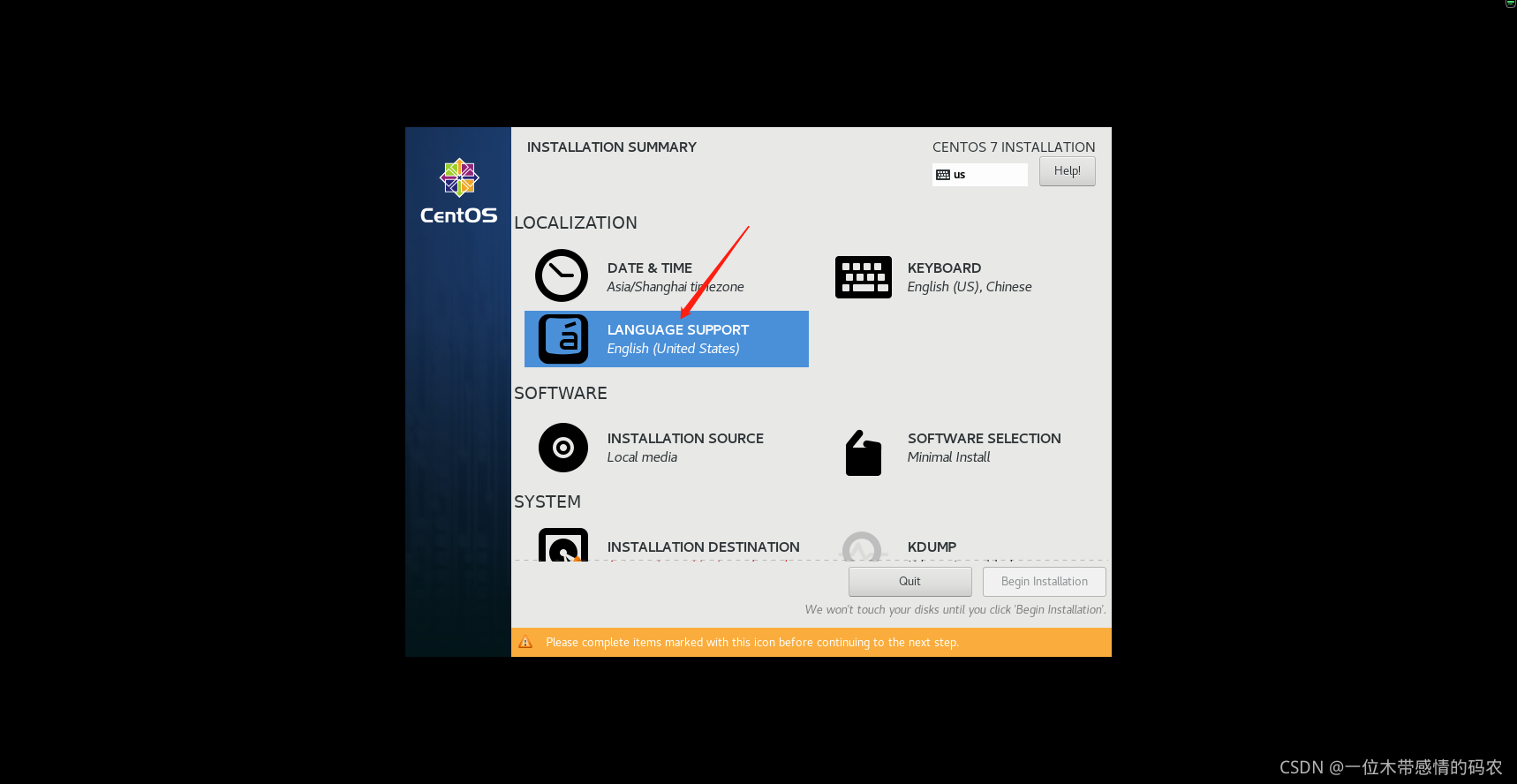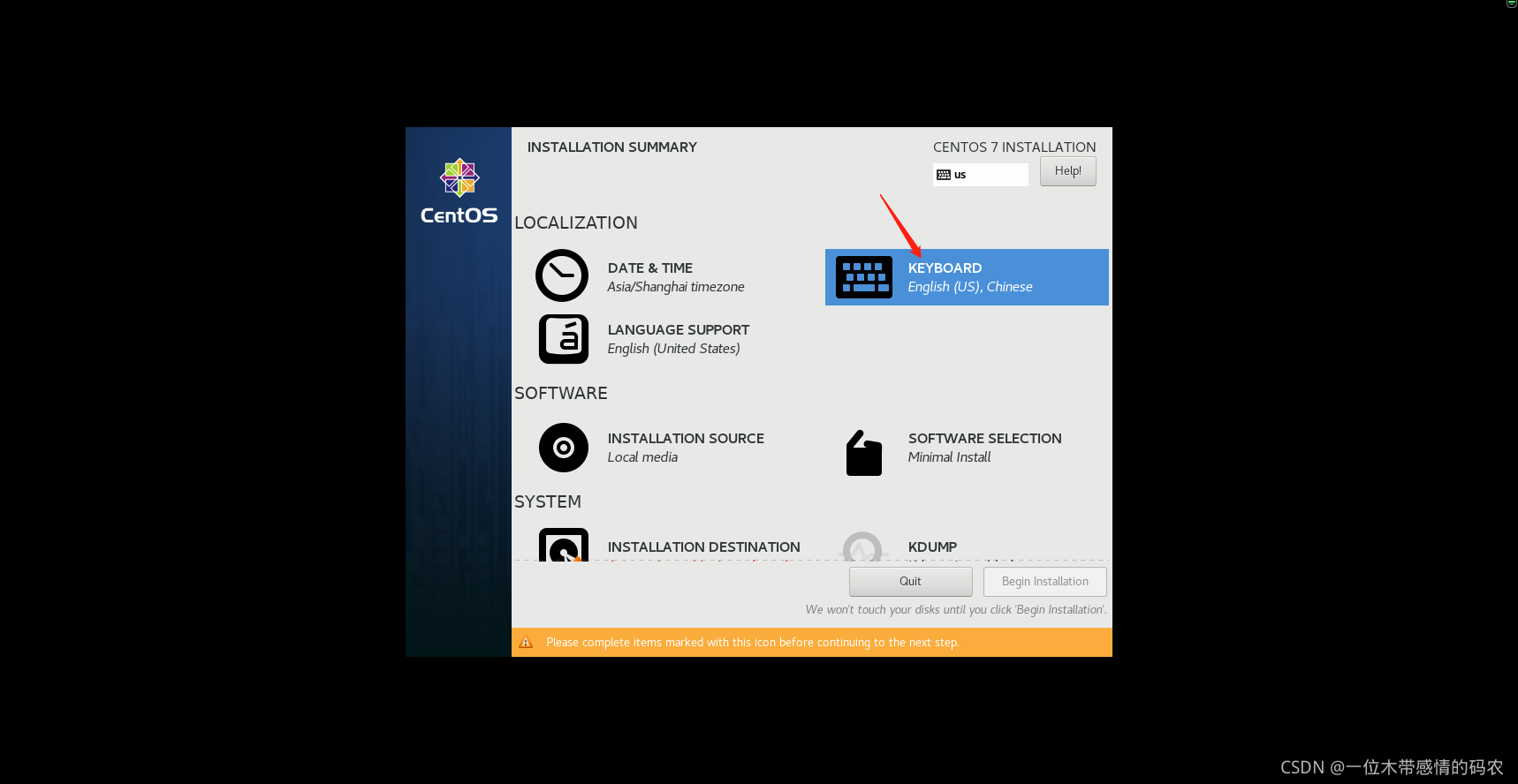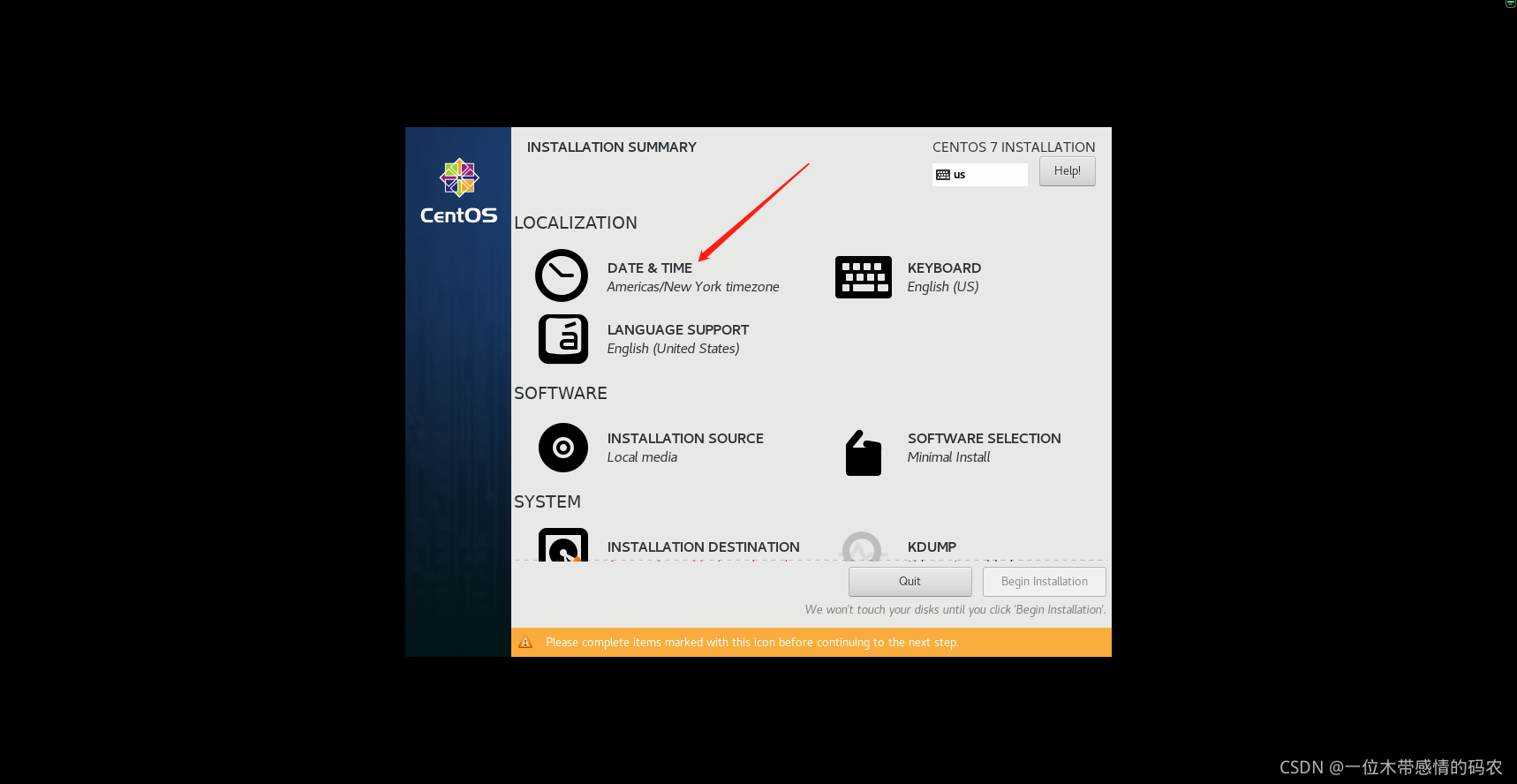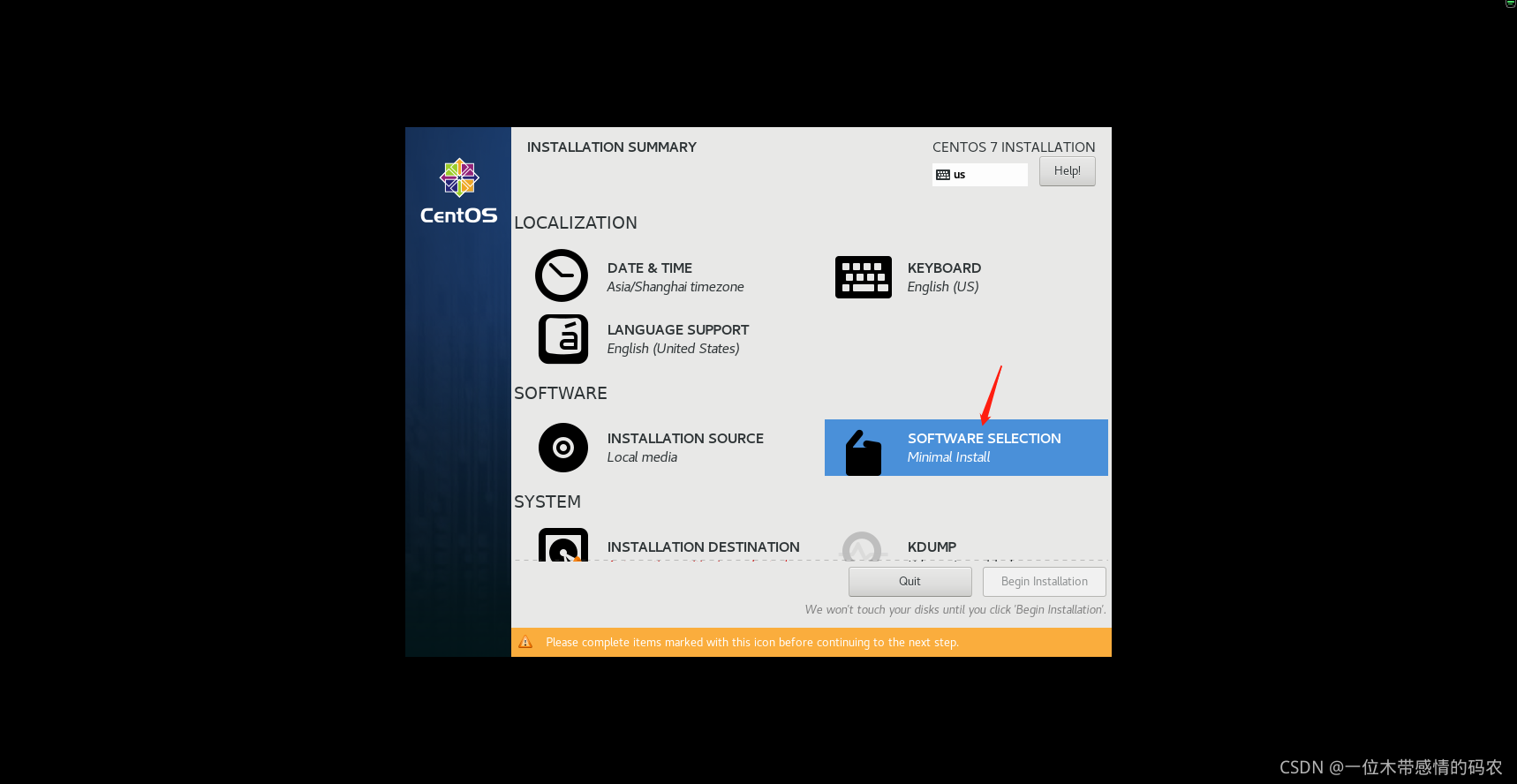 Linux——版本选择CentOS 7 64 位——点击下一步
