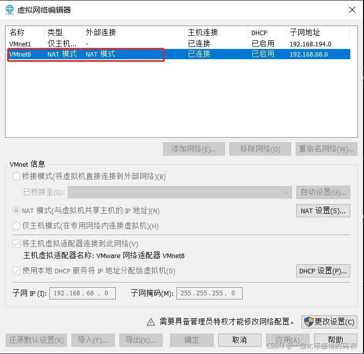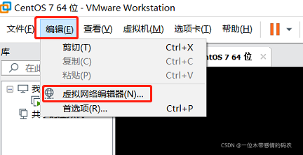 ping www.baidu.com,不能成功,可以检查虚拟机网络是否正常,点击编辑——点击虚拟网络编辑器