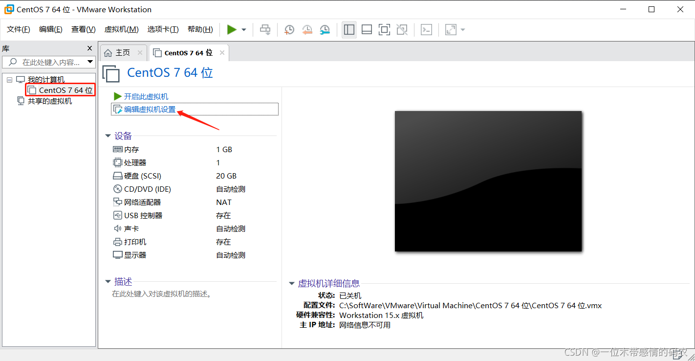 左边会出现创建的虚拟机——点击编辑虚拟机设置