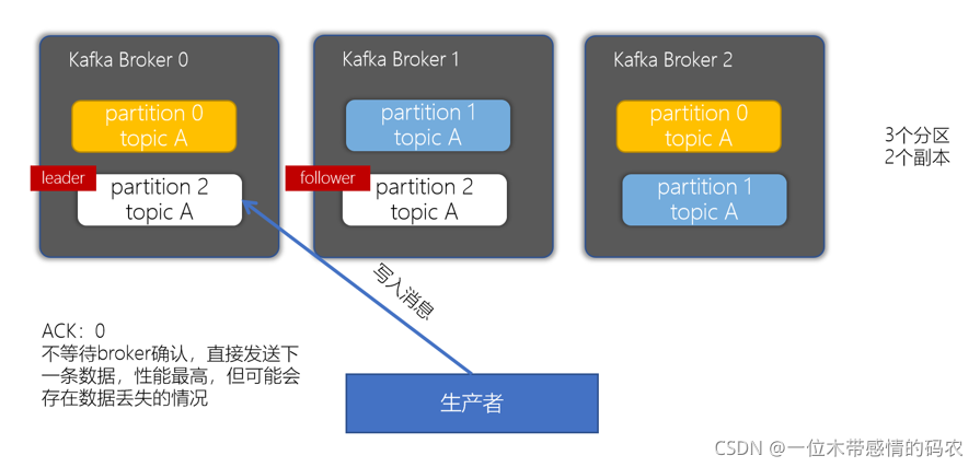 对于某些不太重要的数据,对数据的可靠性要求不是很高,能够容忍数据的少量丢失, 所以没必要等 ISR 中的 follower 全部接收成功。