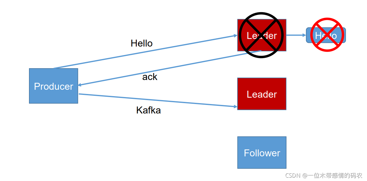 但是如果在 follower 同步完成后,broker 发送 ack 之前,leader 发生故障,那么会造成