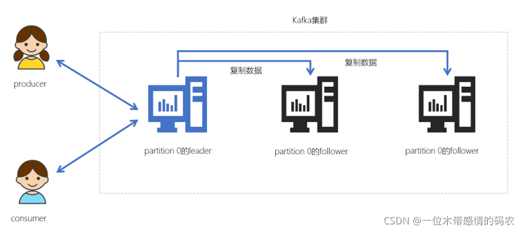 - Kafka 中的 leader 负责处理读写操作,而 follower 只负责副本数据的同步