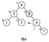 我们前面例子中的新增结点 9 和 8 就是典型的右平衡旋转,并且双旋完成平衡的例子(此前的图 11、图 14 就是类似样例)。