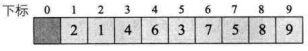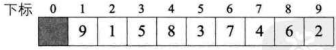 SqList参数的值为length=9,r[10]={0,9,1,5,8,3,7,4,6,2}。这就是我们需要等待排序的序列,如下图所示。