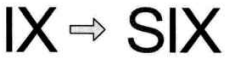 方法二:在 “IX” 前面加一个 “S”,此时构成一个英文单词 “SIX”,这就等于得到一个 6 了。哈哈,我听到下面一片哗然,我刚有没有说一定要是 “VI” 呀,我只说把它变成 6 而已,至于是罗马数字还是英文单词,我可没有限制。显然,你们的思维受到了我前面举例的 “VII” 转变为 “VII” 的影响,如下图所示。