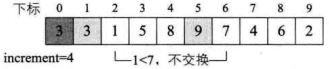 i=7,L.r[7]=4<L.r[i-increment]=L.r[3]=5,交换两者数据。如下图所示。
