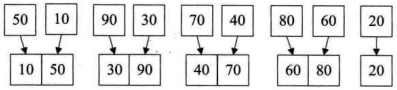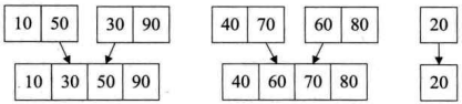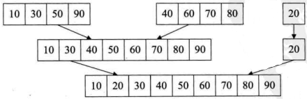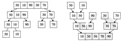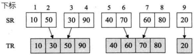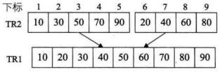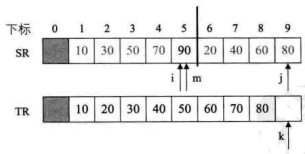 Merge就是将 {10,30,50,70,90} 与 {20,40,60,80} 归并为最终有序的序列,因此数组SR为 {10,30,50,70,90,20,40,60,80},i=1,m=5,n=9。 - 第 4 行,