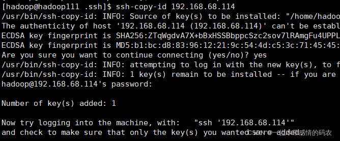 为了后续脚本一键启动关闭集群方便,设置 NameNode 到新机器的免密登录。