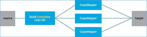 DistCp底层使用MapReduce在群集之间或并行在同一群集内复制文件。执行复制的MapReduce只有mapper阶段。 它涉及两个步骤: