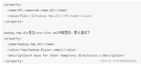 其中的dfs.namenode.name.dir是在hdfs-site.xml文件中配置的,默认值如下: