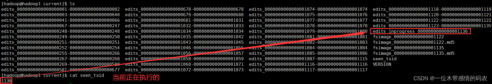 已完成且不可修改的编辑日志。这些文件中的每个文件都包含文件名定义的范围内的所有编辑日志事务。在 HA 高可用性部署中,主备 namenode 之间可以通过 edits log 进行数据同步。
