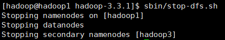 在 hadoop1 节点上,执行一键关闭 HDFS 集群命令:stop-dfs.sh。