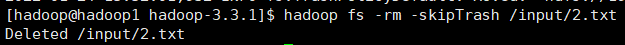 hadoop fs -rm -skipTrash /input/2.txt