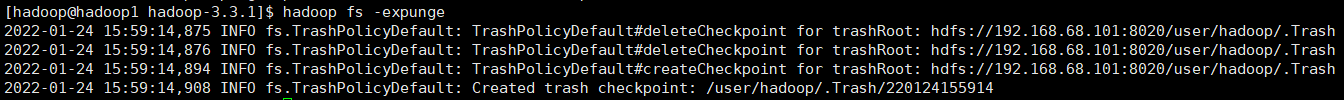 hadoop fs -expunge