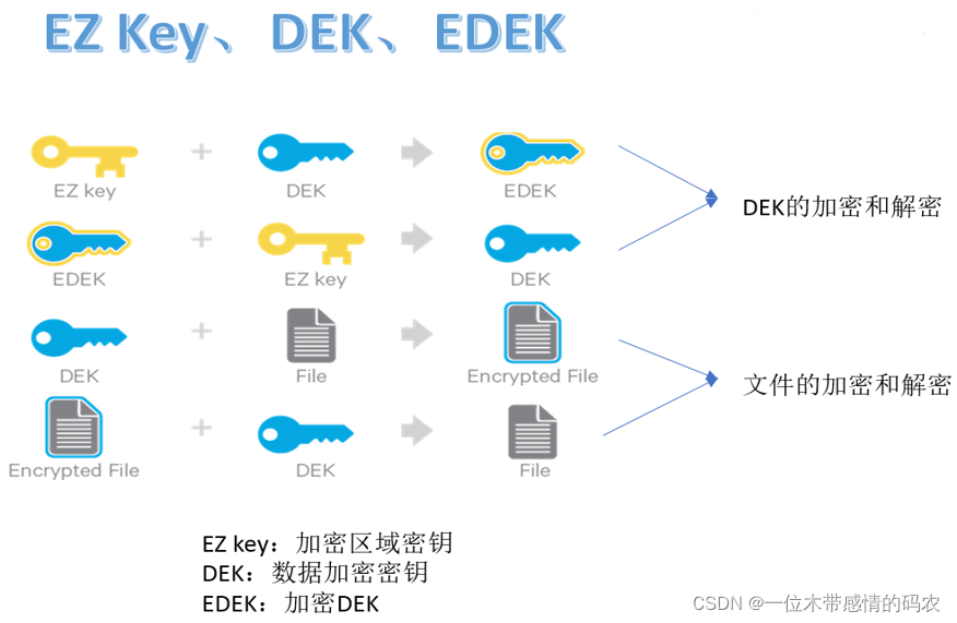 关于 EZ 密钥、DEK、EDEK 三者关系如下所示: