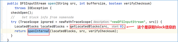 DFSClient在获取到 block 的位置信息之后,继续调用openInternal方法。