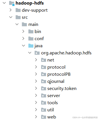 在hadoop-hdfs模块中,主要实现了网络、传输协议、JN、安全、server服务等相关功能。是 hdfs 的核心模块。并且提供了 hdfs web UI 页面功能的支撑。