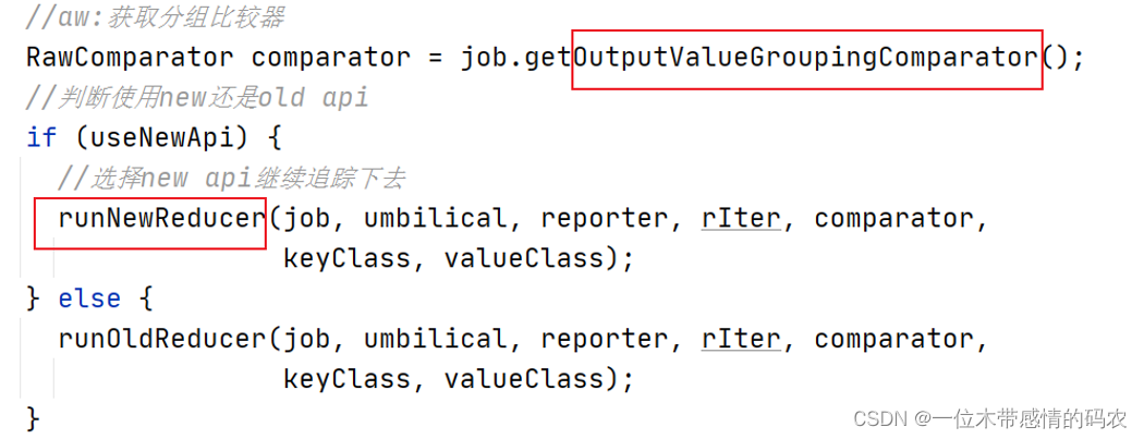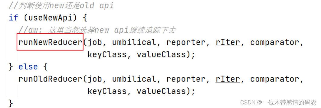 默认情况下,框架使用 new API 来运行,所以将执行runNewReducer()。