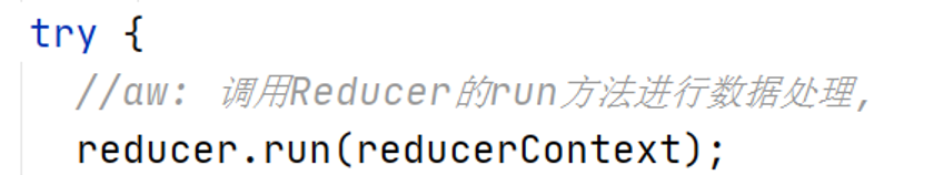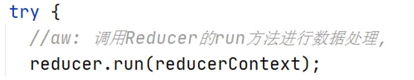 在 runNewReducer 的代码中,最后还调用了 Reduer.run 方法开始针对 shuffle 后的数据进行 reduce 操作。