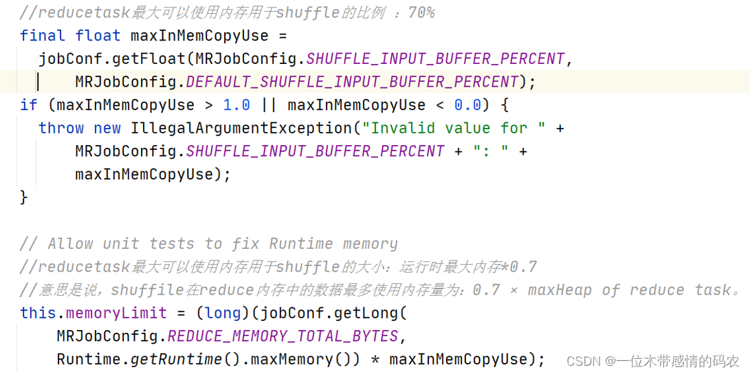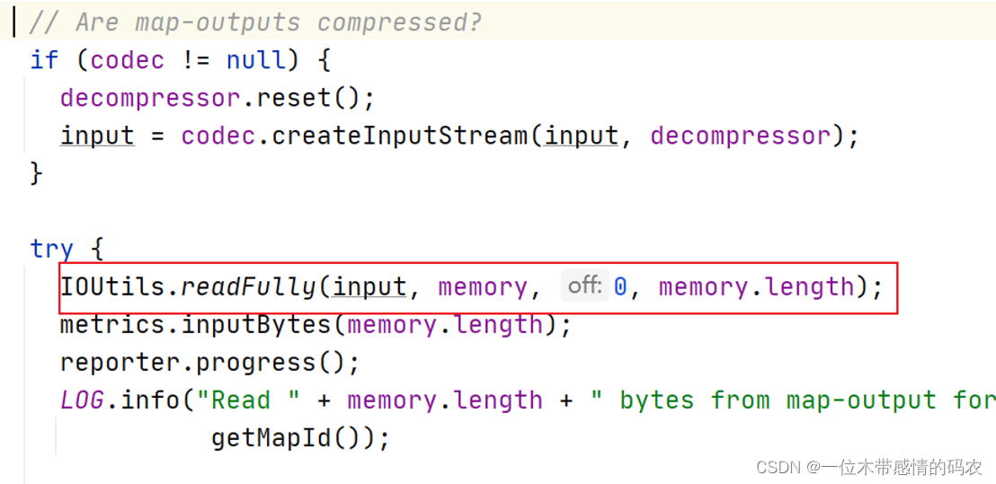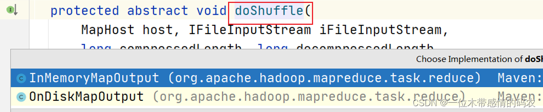 InMemoryMapOutput:把 copy 来的数据放置到 reducetask 内存中。