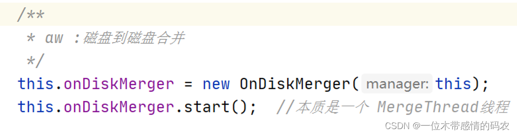 onDiskMerger 本质是一个 MergeThread 线程。进入线程 run 方法。