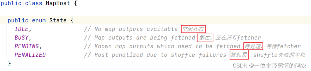 MapHost 类用于标记 MapTask 任务状态,记下 MapTask host 信息。