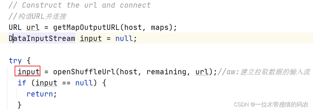 因此获得的 mapOutput 就有两种具体的实现。通过 mapOutput.shuffle 开始拉取数据。