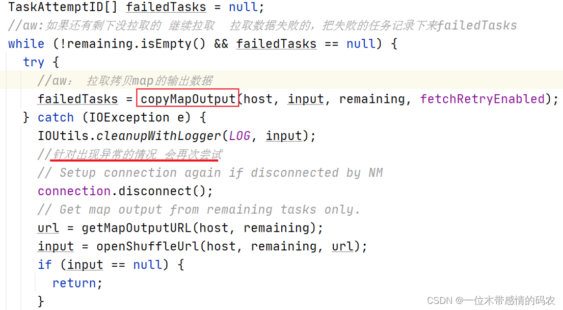 然后进入核心方法,copyFromHost,从 map 拉取数据