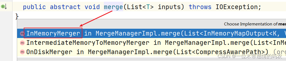 inMemoryMerger 本质是一个 MergeThread 线程。进入线程 run 方法。