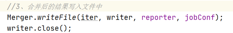 待数据 copy 完成之后,copy 阶段就完成了,开始进行 sort 阶段,sort 阶段主要是执行finalMerge操作,纯粹的 sort 阶段。