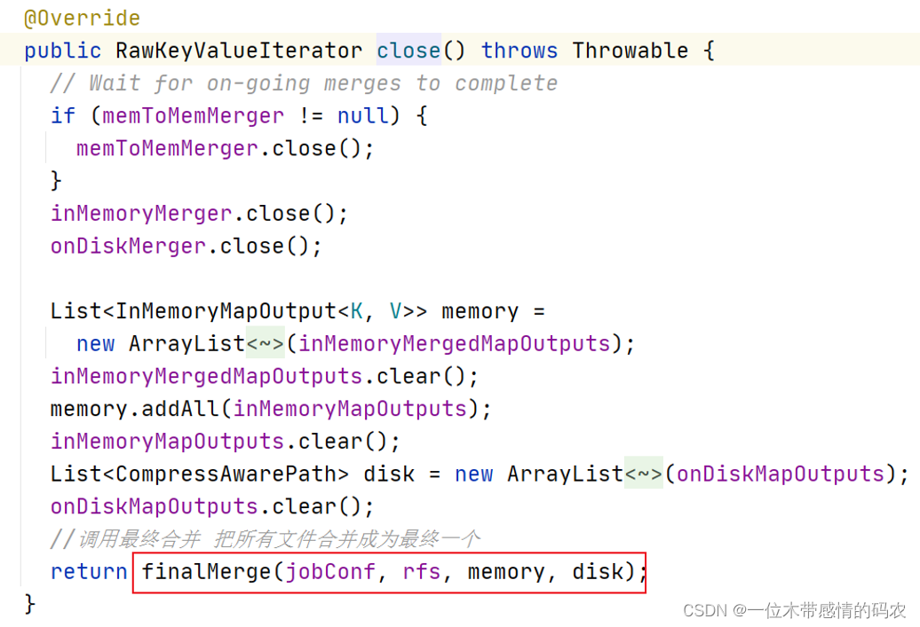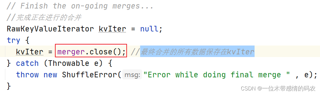 当所有的 Fetcher 拉取数据结束之后,会进行最终一次合并,最终合并的所有数据保存在 kvIter。