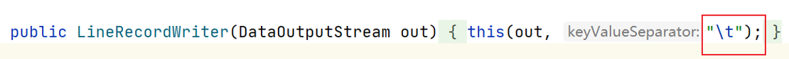 在构造 LineRecordWriter 的时候,已经设置了输出的key,value之间是以\t制表符分割的。