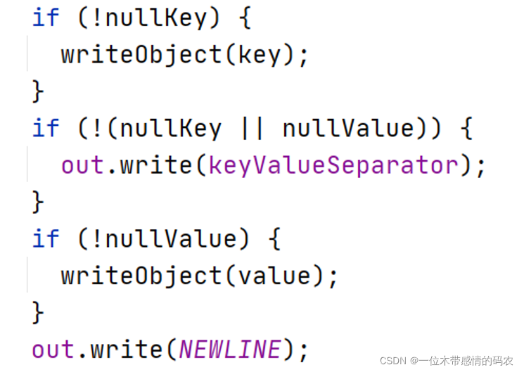LineRecordWriter 的行为是一次输出写一行,再有输出换行写。