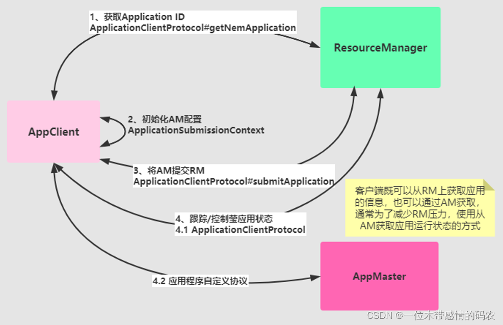 • 步骤 4:客户端通过 AM 或 RM 获取应用的运行状态,并控制应用的运行过程;