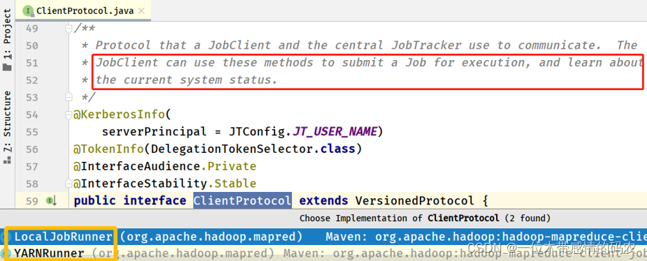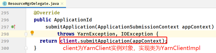 此时ApplicationClientProtocolPBServiceImpl类属于客户端 Client 实现类,所在包为:org.apache.hadoop.yarn.api.impl.pb.client。
