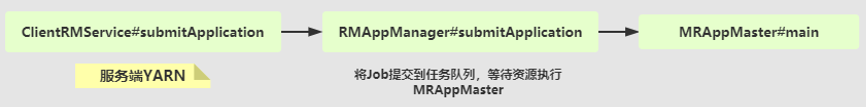 MapReduce 作业提交已经到达 ResourceManager 端,并且交给 RMAppManager 进行继续运转,将此应用当做任务提交到队列 Queue 中,开始执行MRAppMaster任务,流程图如下。