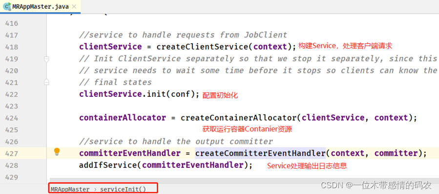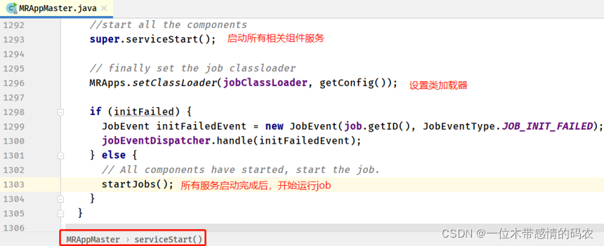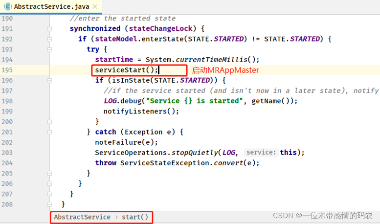 当 MRAppMaster 初始化完成以后,开始启动 MRAppMaster 进程服务。