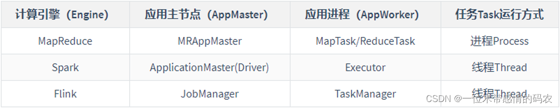 任何一个应用提交运行至 YARN 集群,首先为应用启动 AppMaster,当启动完成以后,为每个应用启动应用进程,调度任务 Task 执行,其中不同应用对应的应用进程不一样。