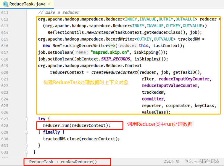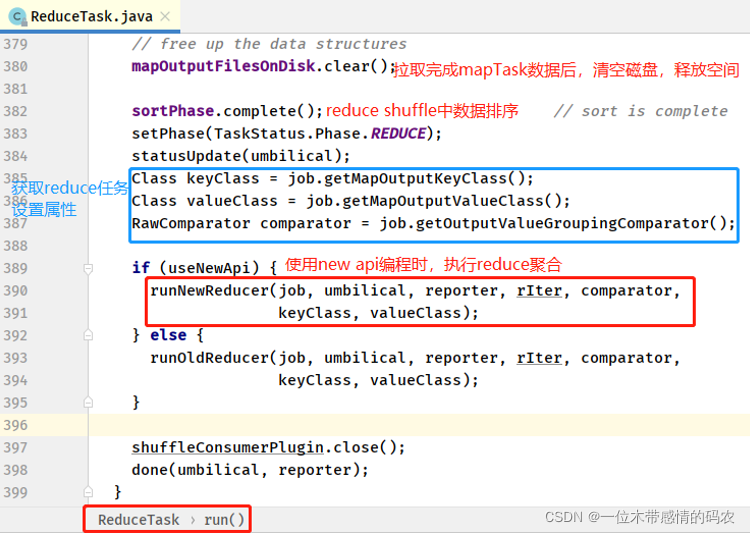 接下来,查看 ReduceTask 类中 run 方法,核心执行流程。